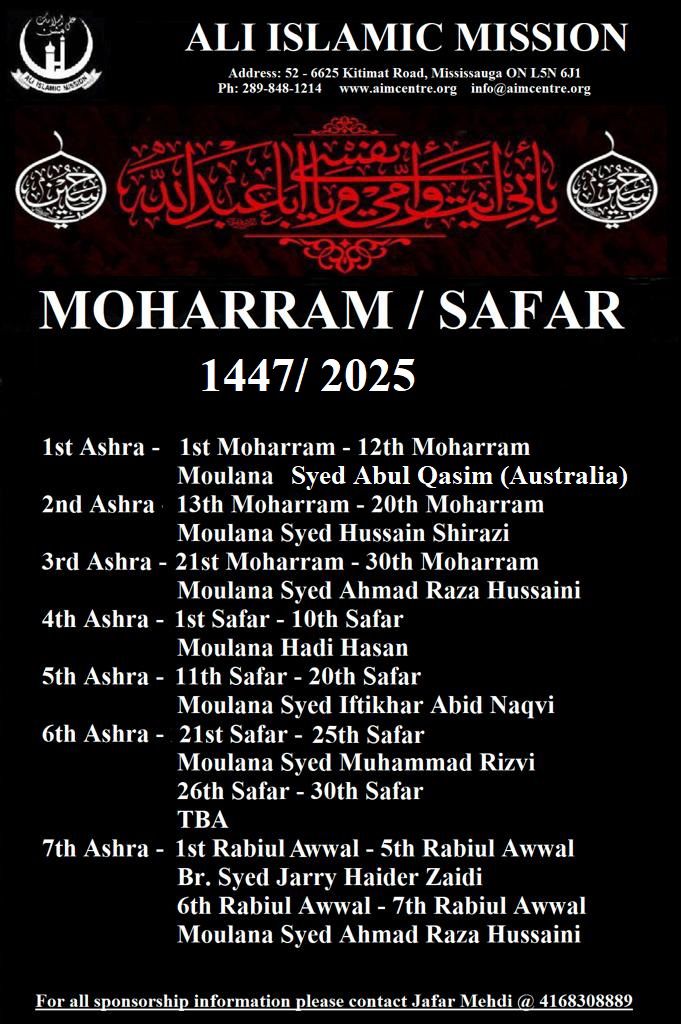 1st Ashra (1st Muharram – 12th Muharram)Moulana Syed Abul Qasim (Australia)